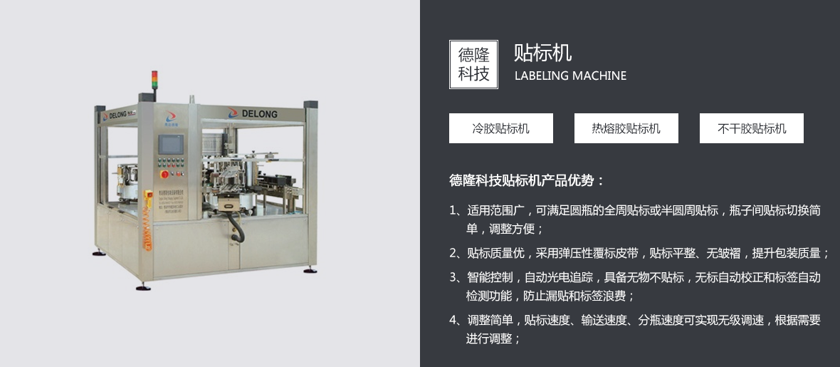 青島德隆自1995年創(chuàng)建以來,始終秉承創(chuàng)新與發(fā)展的優(yōu)良傳統(tǒng),依靠技術(shù)與服務(wù)贏得客戶的信賴與尊重。在貼標(biāo)機(jī)向?qū)W⒒?、多行業(yè)領(lǐng)域發(fā)展并成就了中國異型瓶貼標(biāo)市場的經(jīng)典之后,應(yīng)市場不斷變化的客戶需求,優(yōu)化產(chǎn)品結(jié)構(gòu),引進(jìn)吸收國內(nèi)外的流體包裝設(shè)備理念,在貼標(biāo)機(jī)專業(yè)化地位穩(wěn)固的前提下,逐步實現(xiàn)關(guān)聯(lián)產(chǎn)品的多元化。   目前,青島德隆已經(jīng)成為國內(nèi)能同時滿足圓瓶、方瓶、扁瓶、錐度瓶、球形瓶、定位瓶等瓶型的高、中、低速多功能冷(熱)膠貼標(biāo)領(lǐng)域的廠家。隨著碼/卸(瓶/罐)垛機(jī)、沖瓶機(jī)、灌裝擠(旋/壓)蓋機(jī)、全自動紙箱包箱設(shè)備、排序機(jī)、機(jī)器人碼/卸垛設(shè)備、激光噴碼機(jī)的運(yùn)行成功,一個真正的流體包裝設(shè)備方案解決專家已經(jīng)成熟。   青島德隆集團(tuán)的···......[查看詳情]